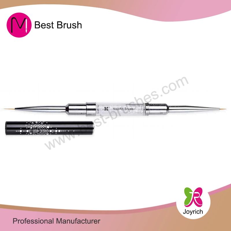 Знайдіть величезний вибір подвійної щітки для нігтів з чорної шапки з Китаю в кращому випадку. Ця щітка виготовлена з нейлоновим волоссям, ручка - це метал, який є модним дизайном та популярною якістю на ринку нігтів. І поєднуйся зі срібним латунним ферулею.