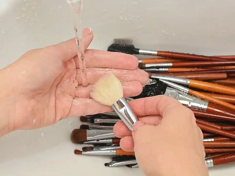 Бажано очистити пензлик для макіяжу один -два рази на тиждень, регулярно прощатися з пошкодженням, спричиненим вторинним забрудненням пензля для макіяжу до шкіри