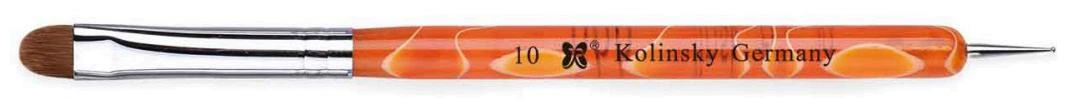 Цей помаранчевий акриловий колінський волосся французька щітка для нігтів виготовляється з волосся Колінського, ручка - акрил, який є модним дизайном та популярною якістю на ринку нігтів. А поєднання зі срібною латунною ферулею.