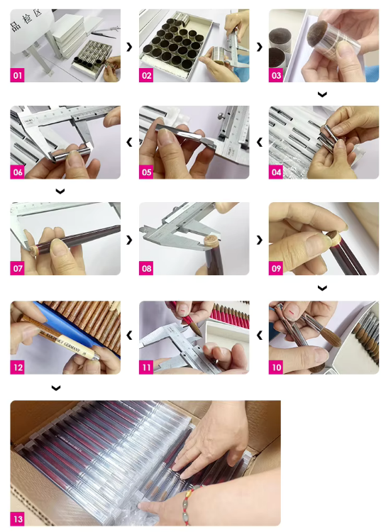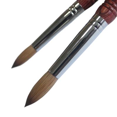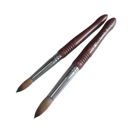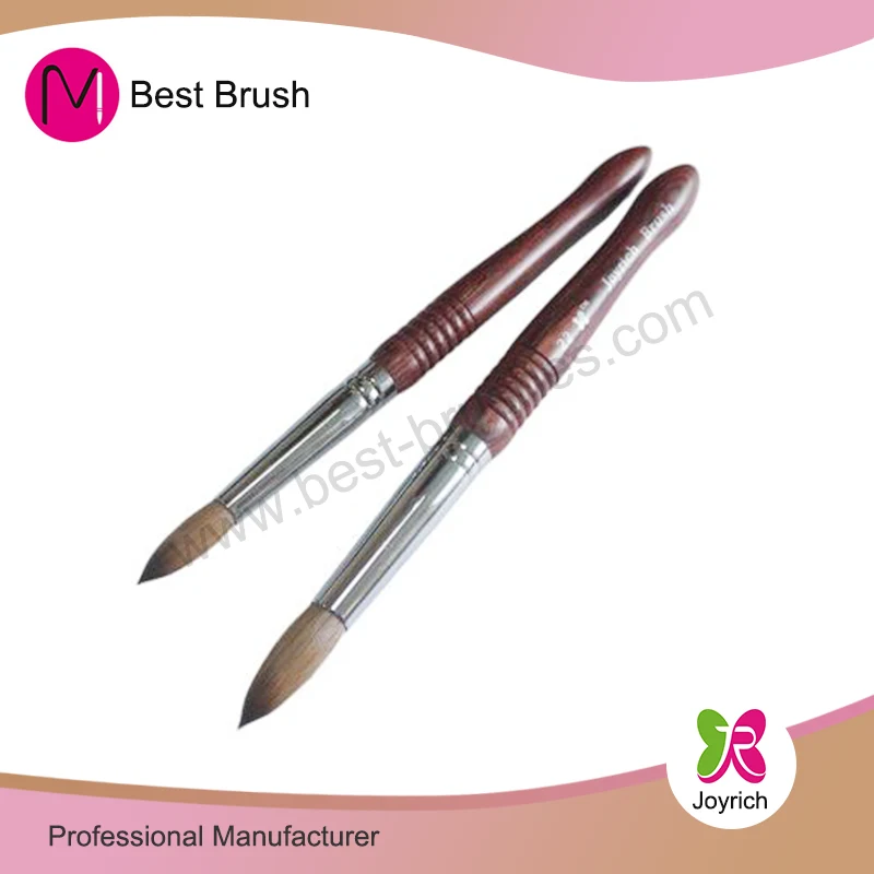 Ця спеціальна кисть для нігтів з деревного колінського рота виготовлена з волосся Колінського, ручка - це спеціальна форма важча червона дерев’яна ручка акрилова щітка для нігтів, яка є класичною та популярною конструкцією, і відповідає сріблястому латунному феруле.
